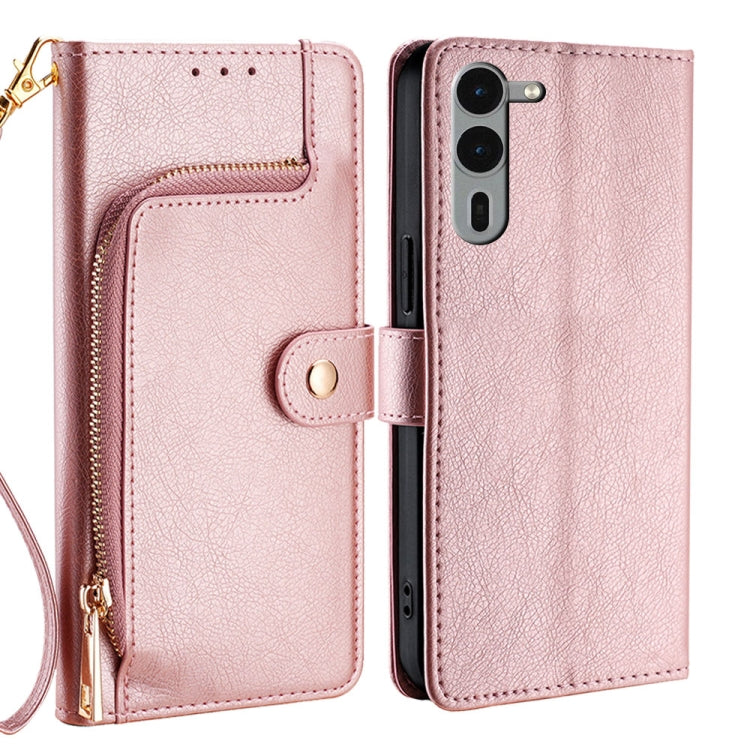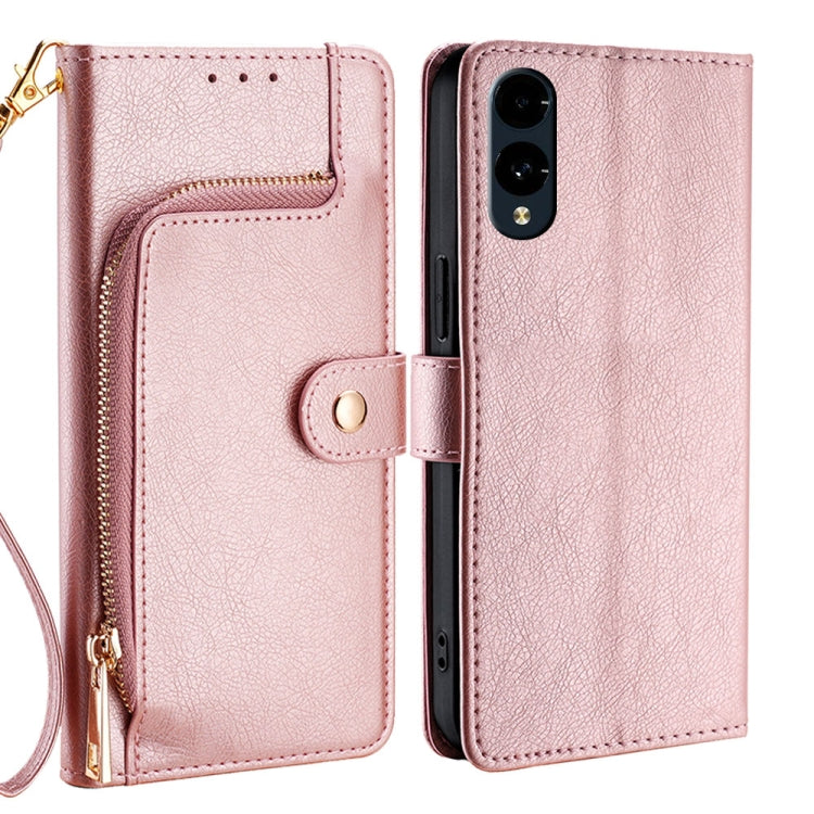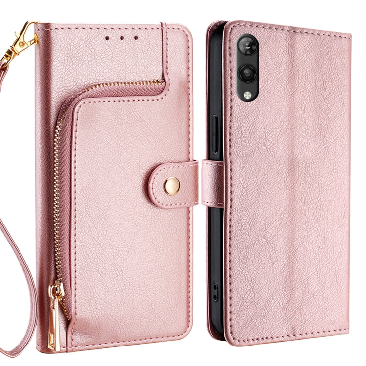 Funda de Cuero con Cremallera para Teléfono Rakuten Hand 5G (Oro Rosa)