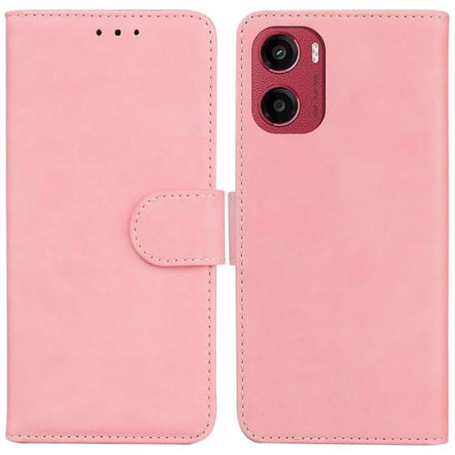 Funda de Cuero con Tapa para Motorola Moto G05/E15 (Rosa) Tacto Sedoso