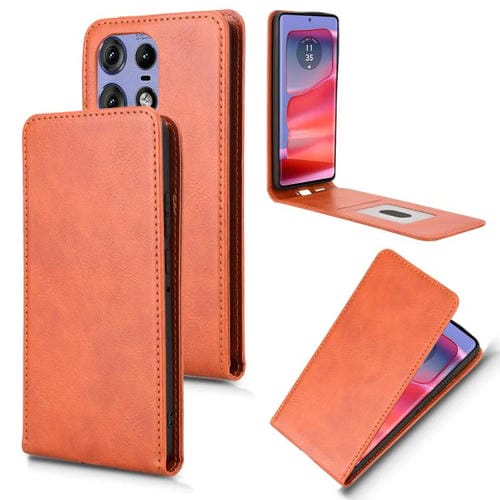 Funda de Cuero con Tapa Vertical Magnética para Motorola Edge 50 Pro 5G (Marrón)