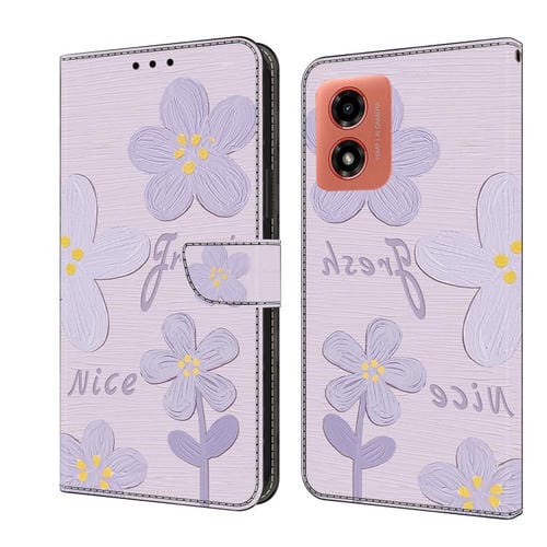 Funda de Cuero Pintada al Óleo para Motorola Moto E20 (Flores Moradas)