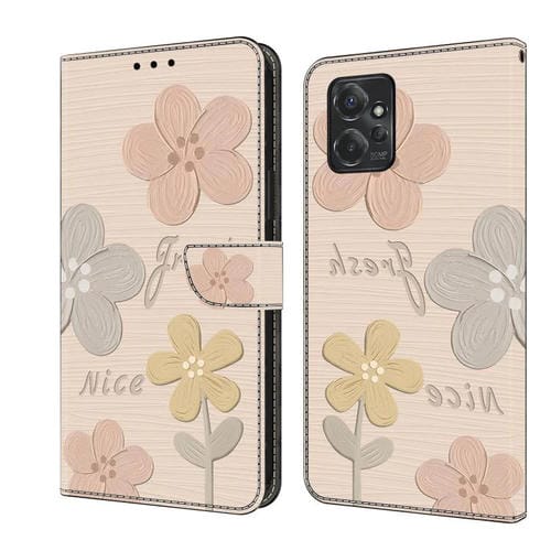 Funda de Cuero Pintada a Mano Motorola Moto G Power 5G 2023 (Flores Beige)