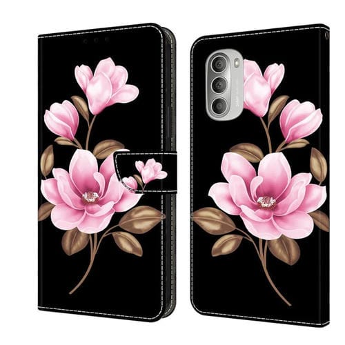 Funda de Cuero Pintada a Mano para Motorola Edge+ (2023) (Flores Negras)