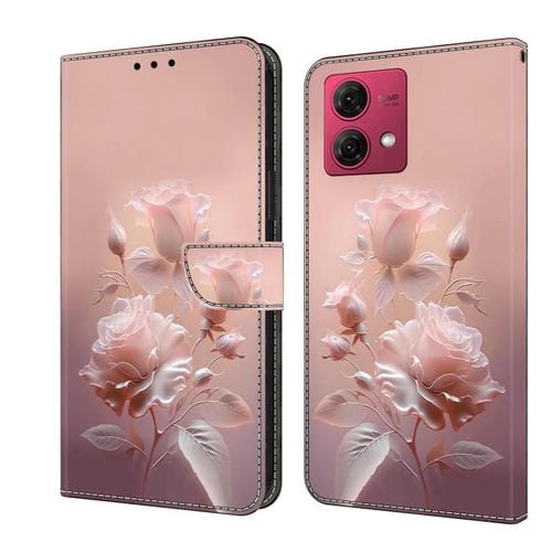 Funda de Cuero Pintada a Mano para Motorola Moto G84 (Flores de Cerámica)