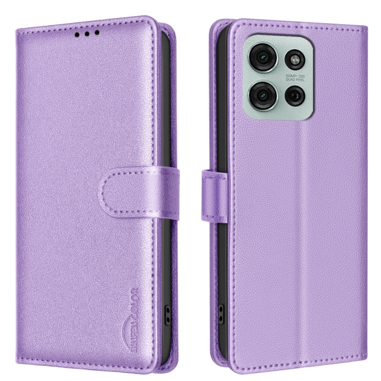 Funda de Cuero Antirrobo RFID con Textura Litchi para Motorola Moto G75 5G (Morado)