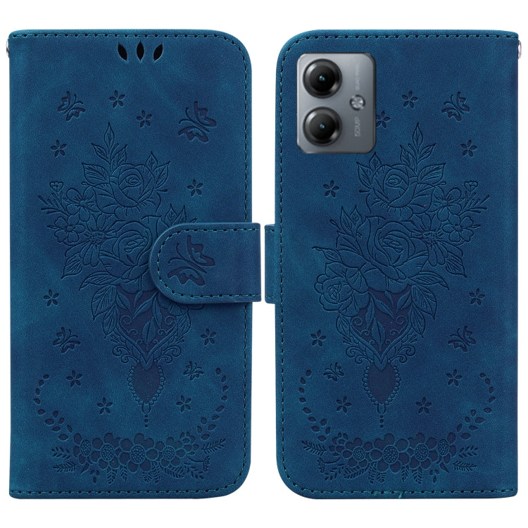 Funda de Cuero para Motorola Moto G14 Butterfly Rose en Relieve (Azul)