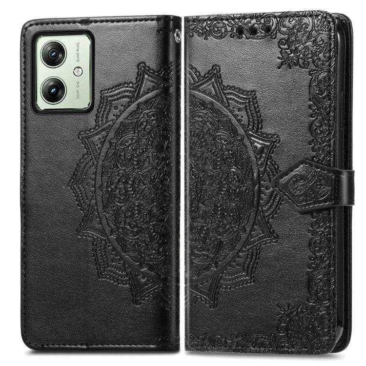 Funda para Motorola G54 5G de Cuero con Relieve Flor de Mandala (Negro)