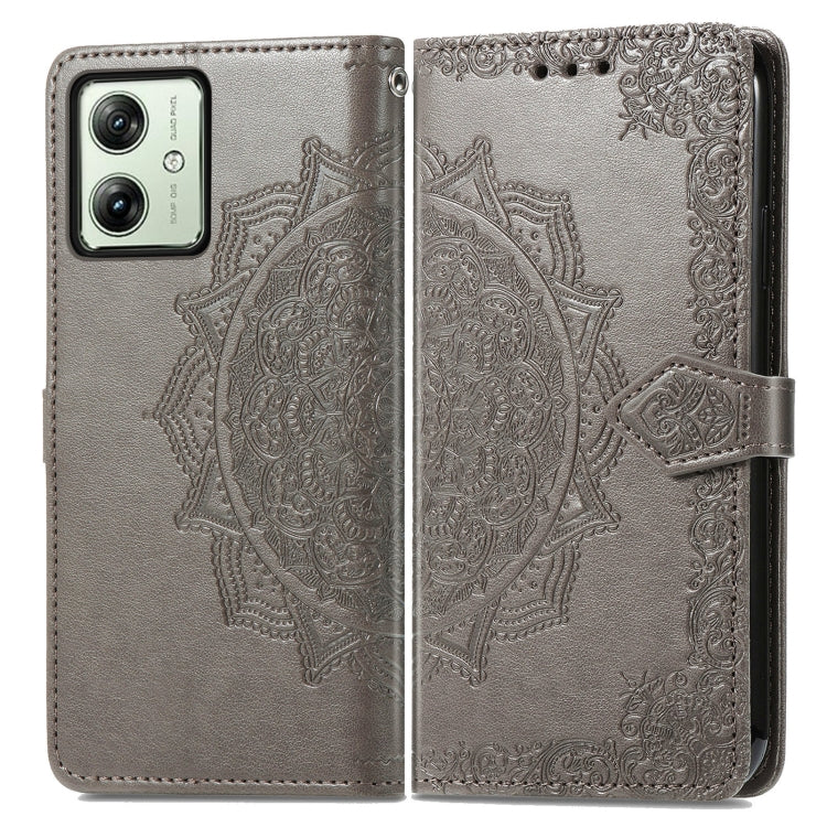 Funda para Motorola G54 5G de Cuero con Relieve de Flor de Mandala (Gris)