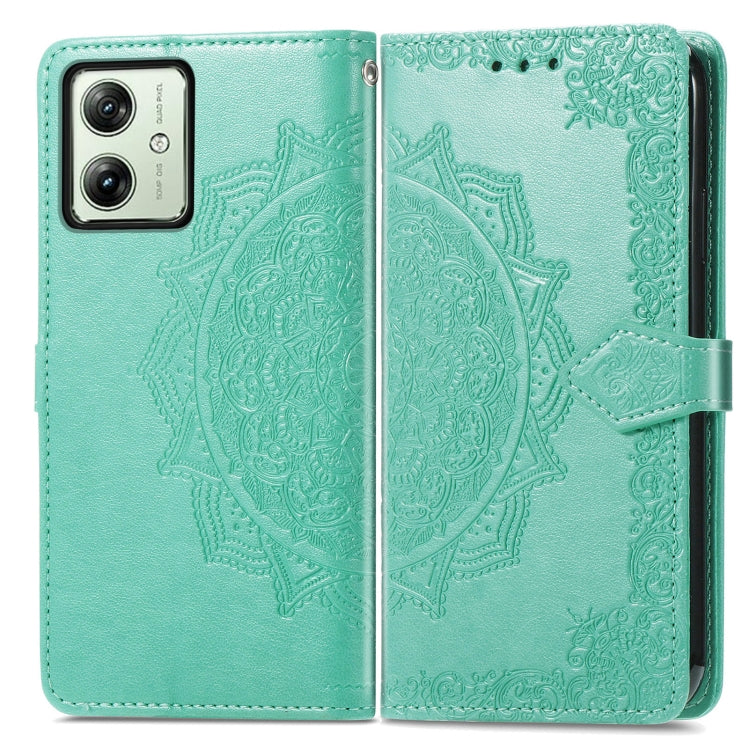 Funda para Motorola G54 5G de Cuero con Relieve de Flor de Mandala (Verde)