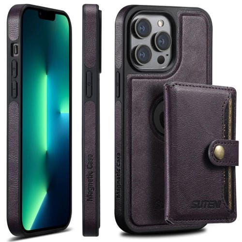 For iPhone 13 Pro Max Simple Wallet Leather Phone Case for 6 Cards (Purple)
