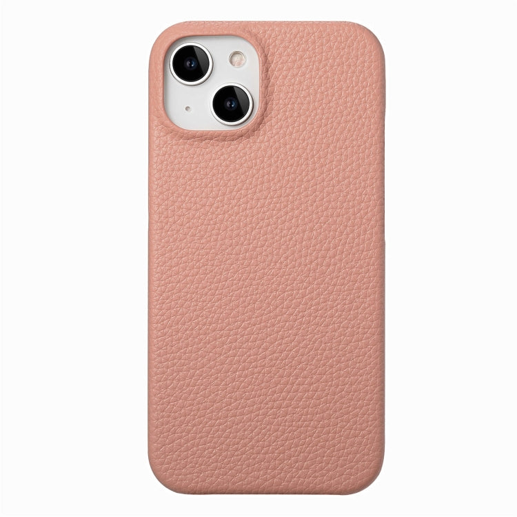 Funda para Teléfono iPhone 15 Plus con Parte Trasera de Cuero Litchi Oil Edge (Rosa)