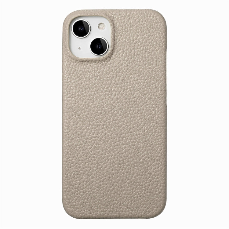 Funda para teléfono iPhone 15 Plus con parte Trasera de cuero Litchi Oil Edge (Caqui)