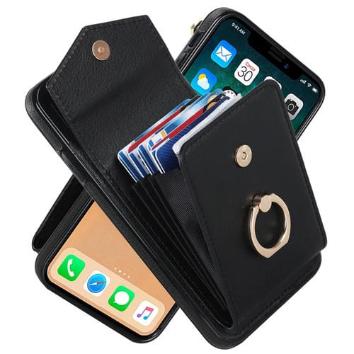 Funda para iPhone Xs Max Ring Holder con Ranura para Tarjeta RFID (Negro)