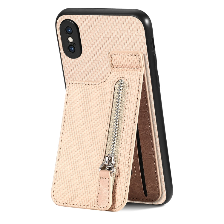 Funda para iPhone Xs Max Carbon Fiber Horizontal Flip Zipper Wallet Phone Case (Caqui)