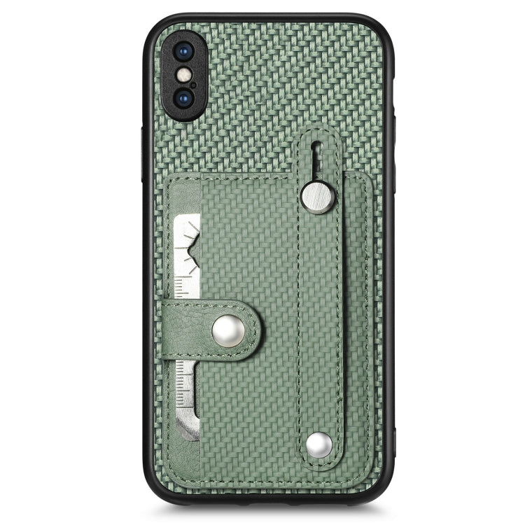 Funda para iPhone Xs Max Wristband Kickstand Card Wallet con Tool Knife (Verde)