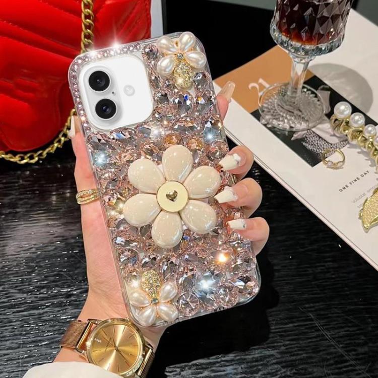 Funda para Teléfono iPhone X Xs Soporte Girasol PC Diamantes Colocados a Mano (Rosa)