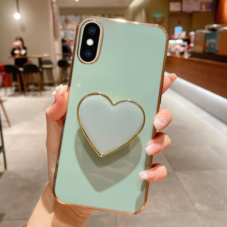 Funda para teléfono iPhone X / Xs Galvanoplastia Love Heart Holder TPU (Verde)