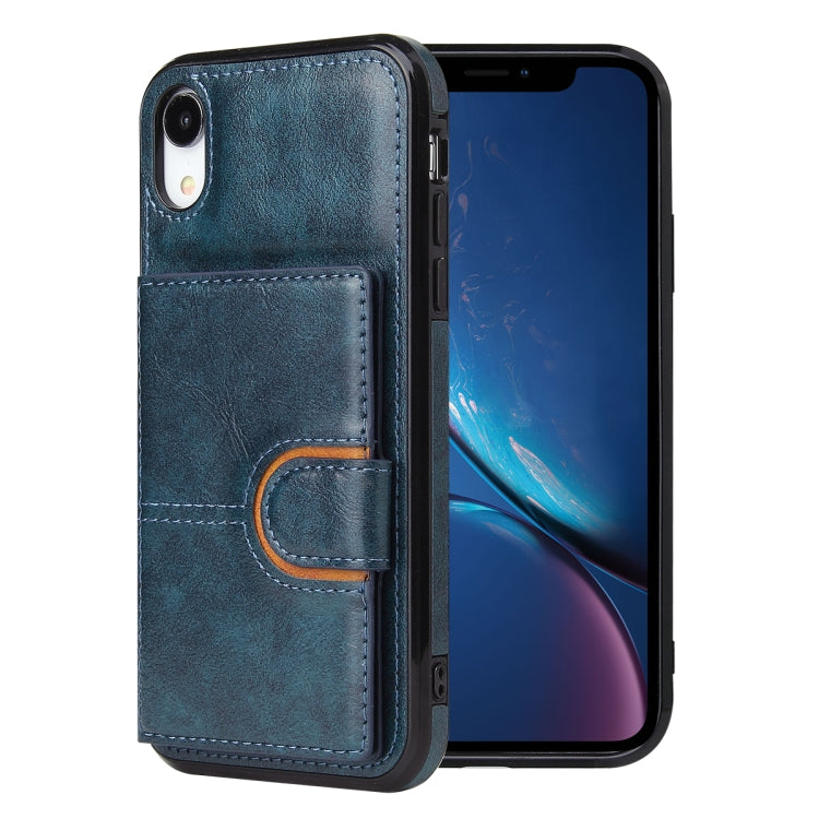Funda Trasera para iPhone X / Xs Pu + TPU + PC con Ranura para Tarjeta y Soporte (Azul)