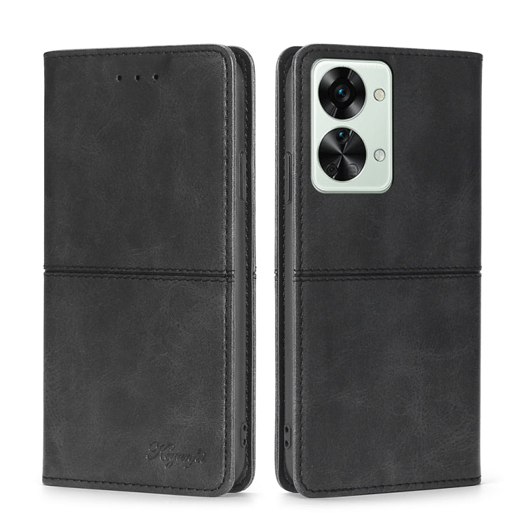 Funda para OnePlus Nord 2T Flip Horizontal Magnética de Cuero Textura Vaca (Negro)