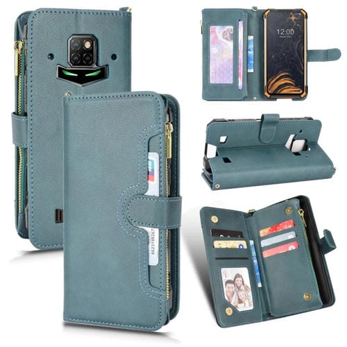 Funda de Cuero para Doogee S86 y S86 Pro con Textura Litchi y FunciĂłn Camper (Verde)