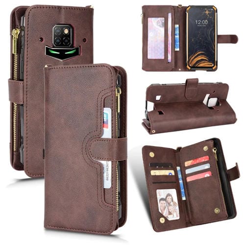Funda Cuero con Cremallera para Doogee S88 Pro y S88 Plus Litchi Texture (MarrĂłn)
