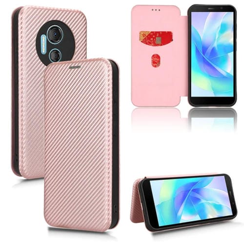 Funda de Cuero para Doogee X97 / X97 Pro con Textura de Fibra de Carbono (Rosa)