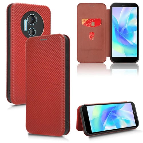 Funda de Cuero para Doogee X97 y X97 Pro con Textura de Fibra de Carbono (MarrĂłn)