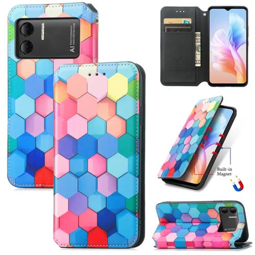 Funda de Cuero Magnético para Doogee X98 Pro / X98 Caseneo (Cuadrados de Colores)