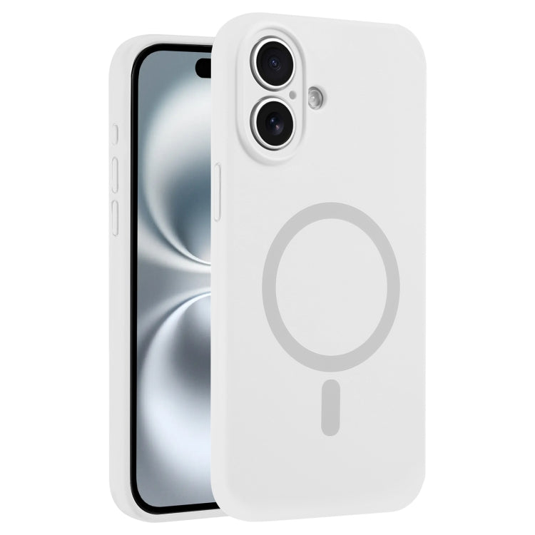 Funda para Teléfono Silicona Líquida iPhone 16 Magsafe Orificio Fino (Blanca)