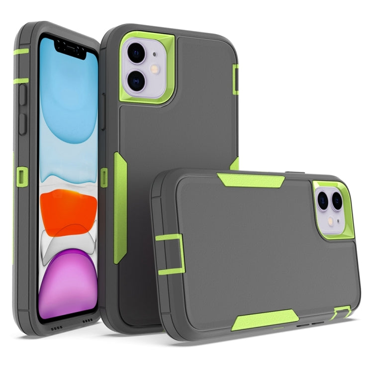 Funda para teléfono iPhone 11 2 en 1 Magnética PC + TPU (Gris + Verde Fluorescente)