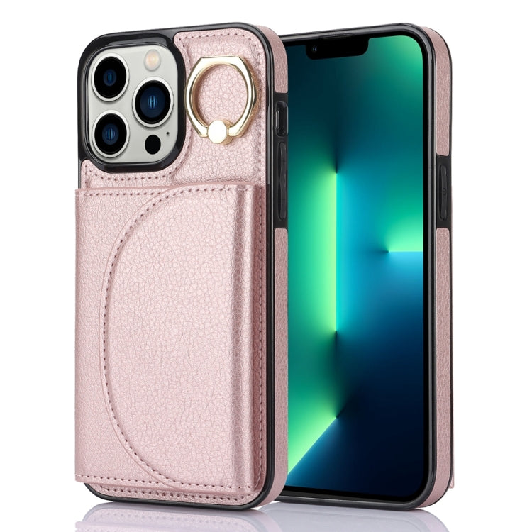 For iPhone 13 Pro YM006 Leather Feeling Card Holder Ring Holder Phone Case (Rose Gold)