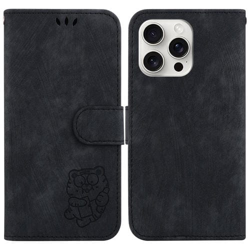 Funda para Teléfono Apple iPhone 16 Pro Max Cuero con Relieve Little Tiger (Negro)