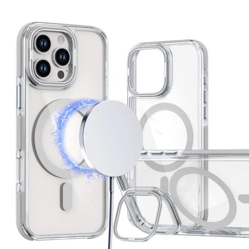 Funda híbrida Acrílico TPU para iPhone 16 Pro Max con soporte Lente Magsafe (Gris)