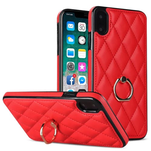 Estuche para Teléfono iPhone X / Xs Cuero Pu Rombal con Soporte para Anillo (Rojo)