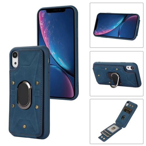 Funda para iPhone Xr Skin Feel Leather con patrón de corazones (Royal Blue)