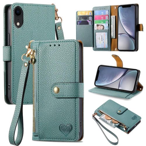 Funda de Teléfono iPhone Xr Cuero a Prueba de Golpes con Tarjetero (Verde)