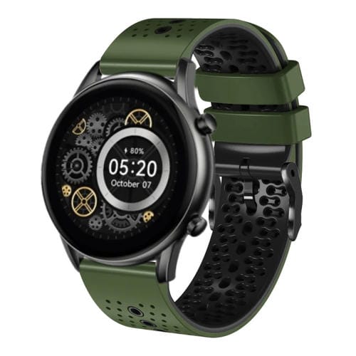 Correa de Reloj Xiaomi Haylou RT2 LS10 Silicona Perforada 22mm (Verde Militar + Negro)