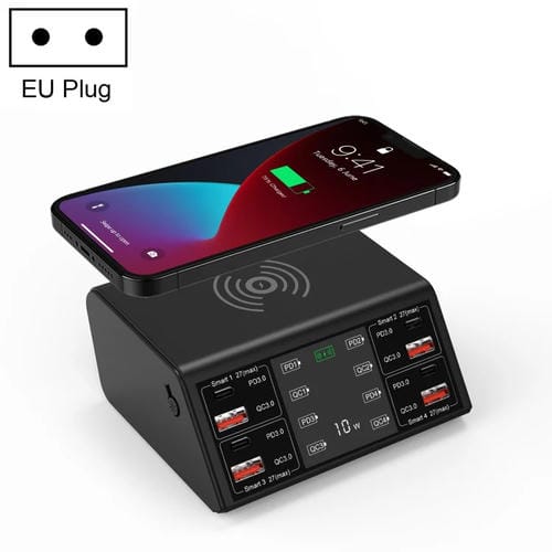 1. Con 4 puertos USB de PD 3.0 tipo C, 4 QC 3.0 y un cargador inalámbrico, puede cargar 9 dispositivos al mismo tiempo