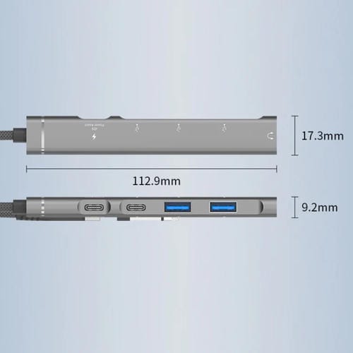 • 1x Adaptador Hub Multifunción 5 en 2 USB-C Type-C y 8 Pines (Plateado)