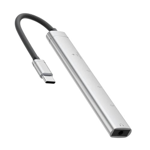 • Interfaz de entrada: Tipo C; salidas: 1 x Carga Tipo C, 1 x datos Tipo C, 2 x USB 2.0, Conector para Auriculares de 3,5 mm; diseño plug and play; Carcasa resistente al desgaste y corrosión; disipación térmica eficiente