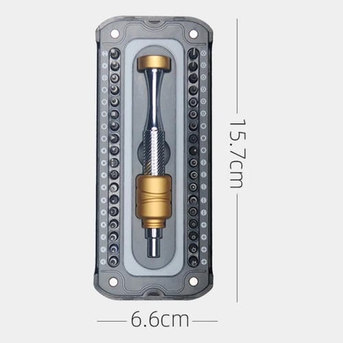 - Contiene 37 Piezas con cabezales intercambiables, Caja Soporte con Tapa Trasera con rodamientos, peso aproximado de 298,2 g, tamaño aproximado de 15,7 x 6,6 cm, adsorción magnética para evitar caída de Piezas