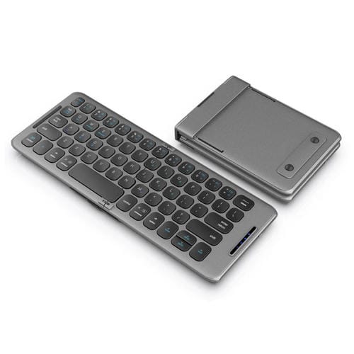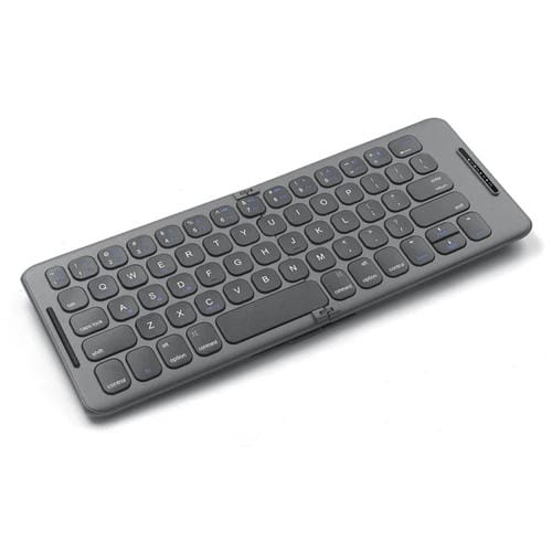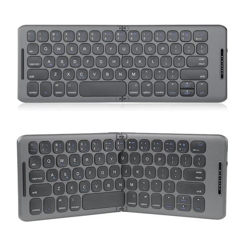 - Teclado Bluetooth multicanal (3 dispositivos), 65 teclas con mecanismo de tijeras, Batería de litio de 90mAh, voltaje de trabajo 3.3-4.2V, tamaño plegado 141.88x100.99x23.89mm, tamaño desplegado 270.26x100.99x11.9mm, distancia de transmisión Inalámbrica hasta 10 metros, interfaz de Carga USB Tipo C