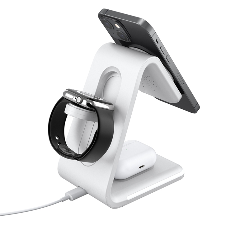 Cargador Vertical Inalámbrico Magnético 3 En 1 B17 (Blanco)