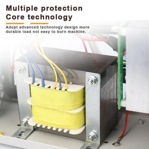 - Potencia de salida: 150W; Rango de frecuencia: 50Hz; Pantalla numérica de control en tiempo real; Dimensiones: 32 x 23 x 20 cm; Peso: 4.4 kg; Diseño con orificios Laterales para disipación de calor