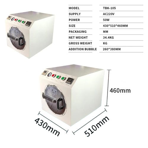 La Máquina de Eliminación de Burbujas TBK-105 es un equipo diseñado para la desaireación en procesos de Reparación y reacondicionamiento de Pantallas LCD. Este dispositivo inteligente y de gran Volumen facilita la eliminación eficiente de burbujas de aire que pueden afectar la calidad visual y funcional de las Pantallas. Su diseño incluye una puerta de cierre rápido y mantiene una temperatura constante para optimizar el proceso de desaireación. Con una Potencia de 50W y dimensiones de 43x51x46 cm, esta Máquina es adecuada para talleres Técnicos y usuarios que reparan por cuenta propia que requieren un equipo seguro y confiable para mejorar la adherencia y acabado de las Pantallas LCD durante su reacondicionamiento.