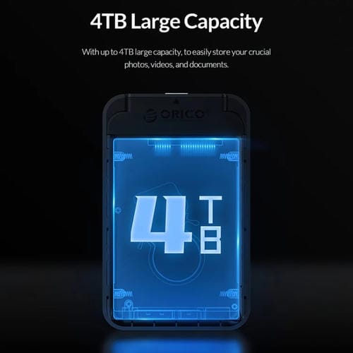 Soporta discos duros de 2,5 pulgadas con capacidad de hasta 4 TB. -
