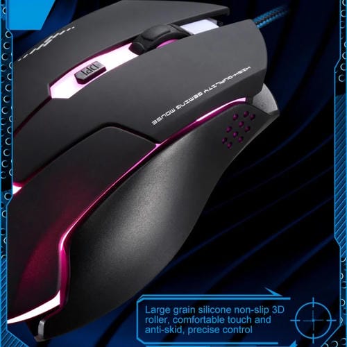 - Resolución ajustable en 3 niveles: 200, 1600 y 2400 DPI; 6 teclas programables; retroiluminación en tres colores con efectos de respiración; peso de 168 g con contrapeso incorporado; rodillo 3D de silicona antideslizante; tamaño de 130x74x38 mm; micro interruptores con vida útil aproximada de 5 millones de clics; Cable USB de 1.8 metros