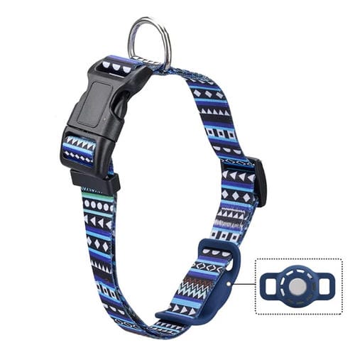 Collar de Mascota Étnico con Estampado Geométrico para AirTag (S) (Azul)