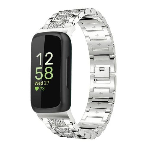 Correa de acero inoxidable con diamantes de imitación para Fitbit Inspire 3 de 12 mm (plata)