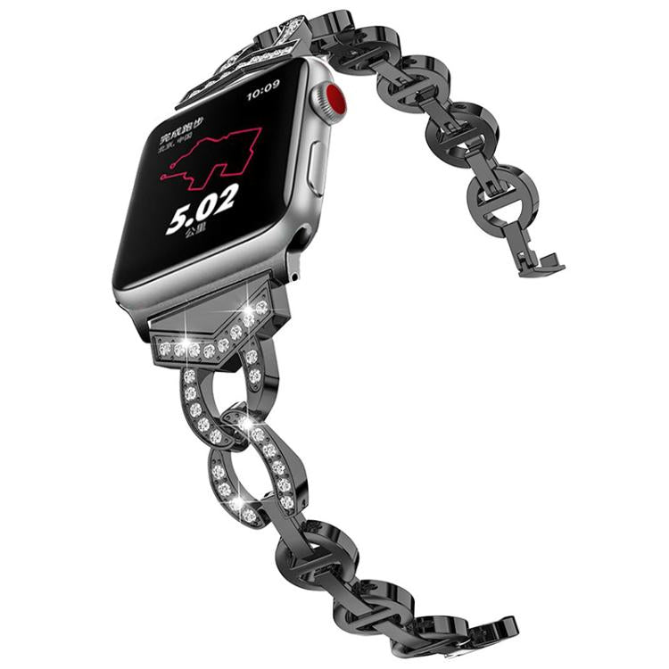 Correa de acero inoxidable con diamantes xDfind para Apple Watch 38/40/41/S10 de 42 mm (negra)