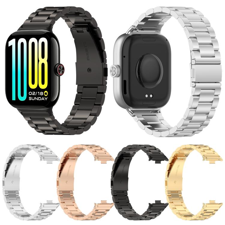 Correa de acero inoxidable con hebilla plana de tres cuentas para VivoWatch GT 2 / iQOO Watch GT 2 (oro rosa)